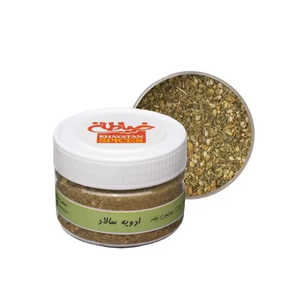 • میزان مصرف: برای هر کاسه سالاد متوسط (برای ۴ تا ۶ نفر)، ۱ تا ۱.۵ قاشق چای‌خوری از ادویه کافی است.