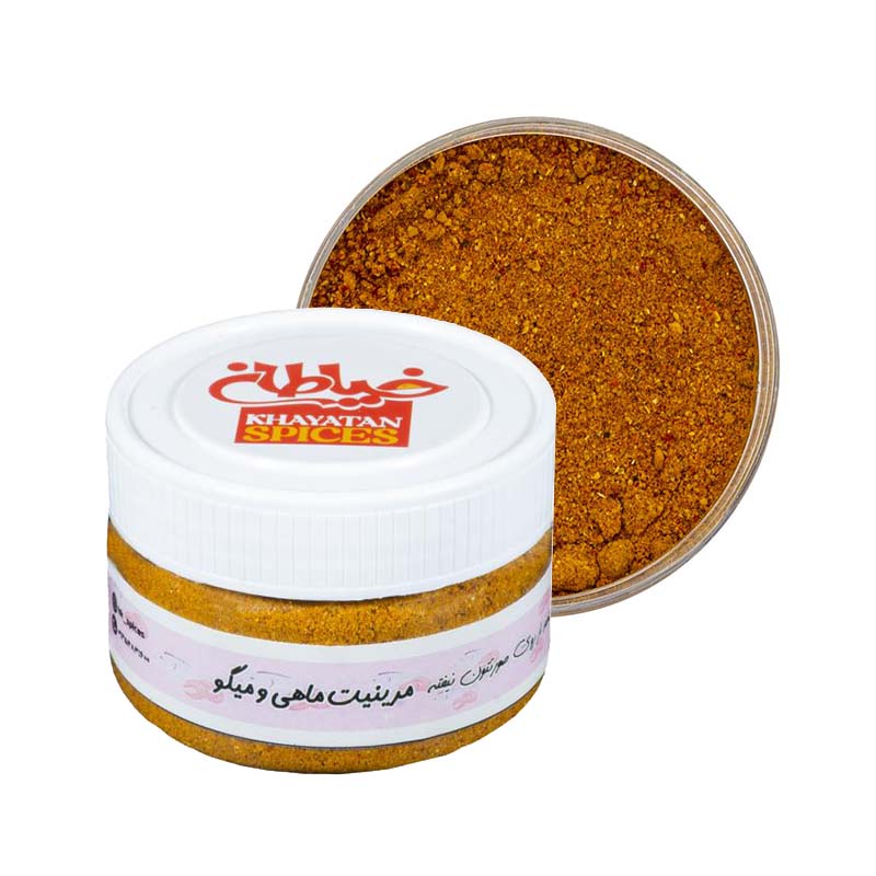 - میزان مصرف: برای هر ۵۰۰ گرم ماهی یا میگو، ۱ تا ۲ قاشق چایخوری از ادویه کافی است.
